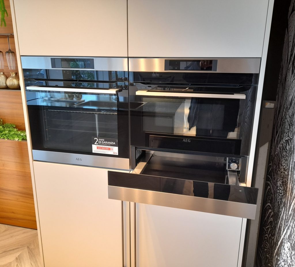 Frigocongelatore, forno, lavastoviglie, microonde e cassetto scaldavivande AEG