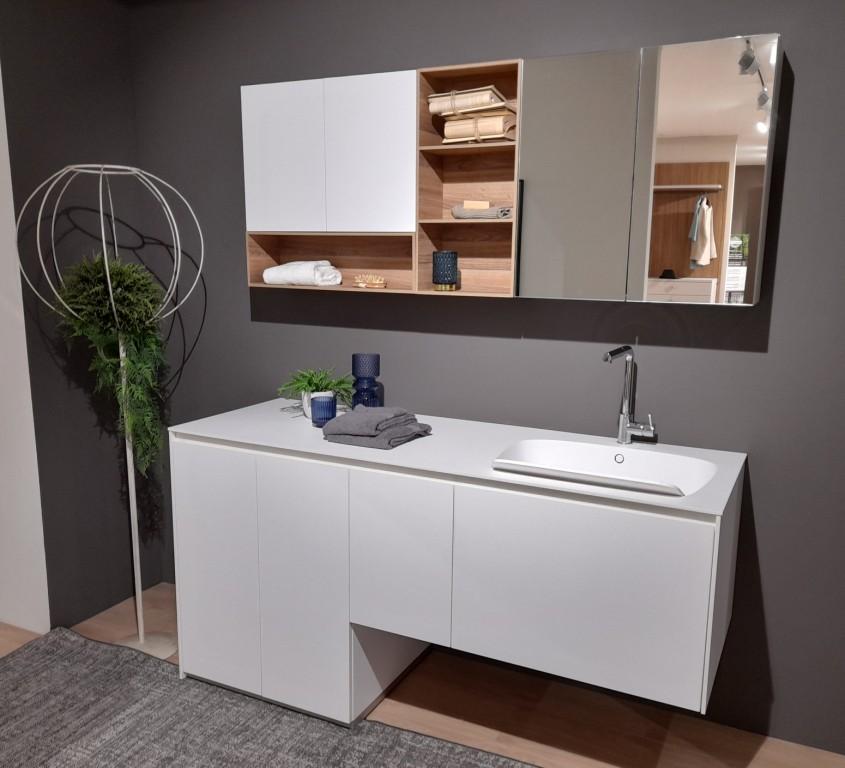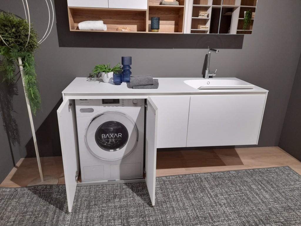 Mobile da bagno mod. M2 System di Baxar con lavabo integrato con asse per lavare asportabile più mobile portalavatrice.